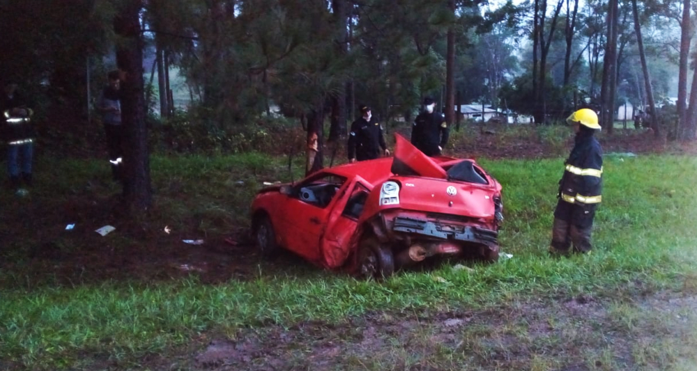 Por razones que se investigan, el conductor de un automóvil Volkswagen Gol perdió el control del rodado, despistó sobre la banquina y terminó impactando contra un árbol de pino.