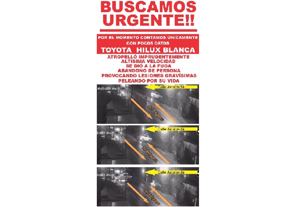 La División de Videovigilancia realizó el cotejo de cámaras de seguridad a los fines de registrar el paso de una camioneta Toyota Hilux color blanca obteniendo imágenes del momento de la colisión.