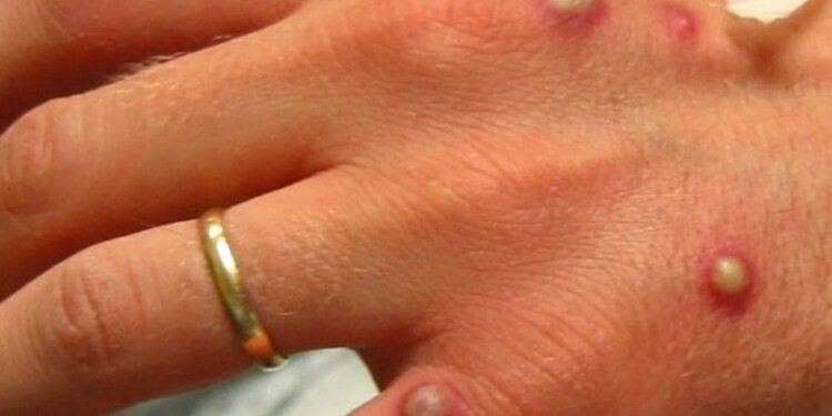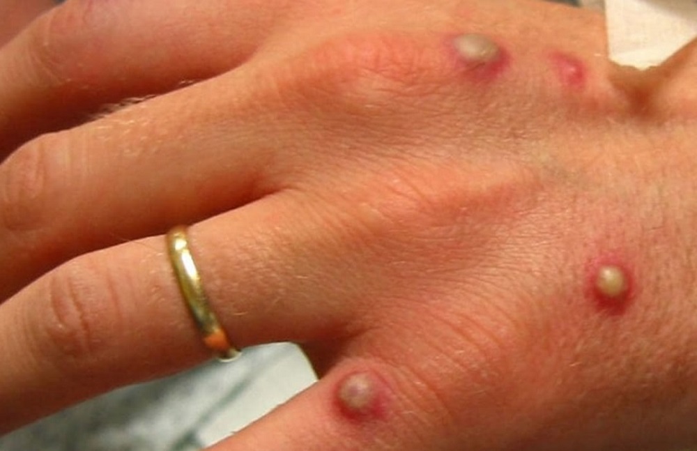 Se trata de una mujer de 27 años, con registro de hospitalización. Comenzó con síntomas el 24 de mayo, con aparición de erupciones cutáneas agudas de tipo papulovesicular en diferentes regiones del cuerpo, que se acompañaban de disfagia, mialgias, astenia, fiebre y adenopatías.