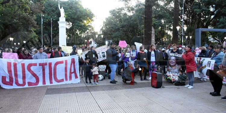 Minutos después de las 17 un nutrido grupo de personas llegó a la plaza frente a la Casa de Gobierno con pancartas alusivas a diferentes casos judiciales que ocurrieron en los últimos años. Desde crímenes hasta casos de supuesta mala praxis. Pero la movilización estuvo orientada principalmente en memoria de la taxista.