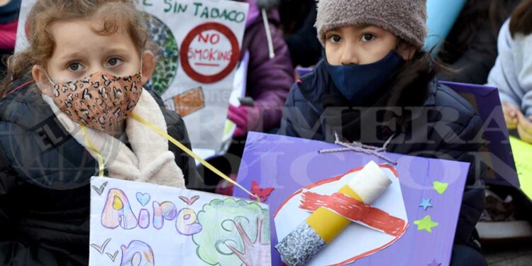 Por el Día Mundial Sin Tabaco, más de 200 alumnos de jardín de infantes hasta quinto año expusieron en la plaza San Martín trabajos artísticos e informativos acerca del medioambiente y el daño que causa el cigarrillo en la salud.