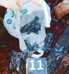 Allí, el señalado se percató de la presencia policial, arrojó una bolsa e intentó darse a la fuga, pero fue rápidamente alcanzado y demorado. Al verificar el contenido, constataron que había envoltorios con una sustancia similar a marihuana.