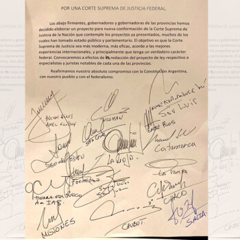 Cabe recordar que Herrera Ahuad junto a otra docena de mandatarios provinciales, se comprometieron a presentar en el Congreso un proyecto de reforma de la Corte Suprema, en medio del litigio que mantiene la Ciudad de Buenos Aires con la Nación por la coparticipación y las asignaciones de partidas extraordinarias para algunos servicios como seguridad y transporte.