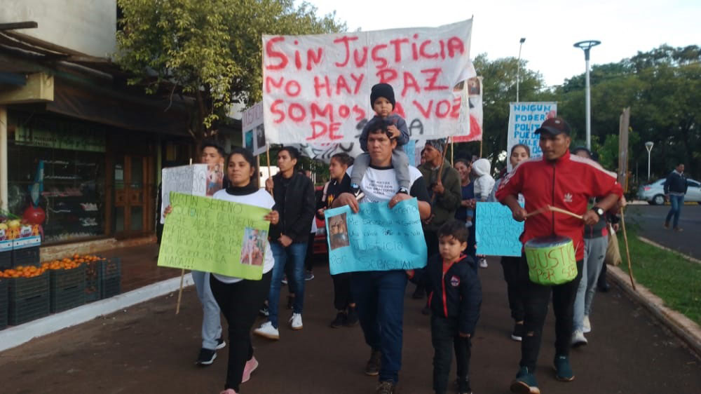 La madre de la víctima fatal, el resto de su familia y allegados directos marcharon ayer por la tarde desde el barrio PROSOL hasta la vereda del Juzgado de Instrucción, en el centro de Jardín América.