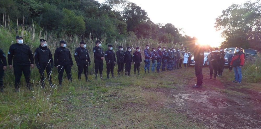El procedimiento en el bañado del barrio Prosol lo encabezó el juez Alarcón, junto al jefe de Policía, Carlos Merlo, el jefe de la Unidad Regional II, Rubén Darío Duarte, integrantes de la Dirección Policía Científica y equipos especializados en rastrillajes.