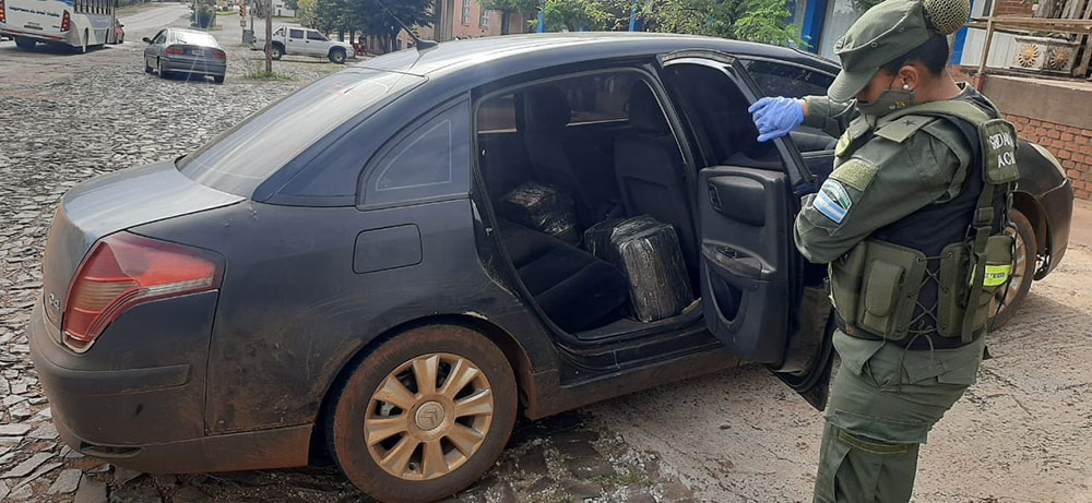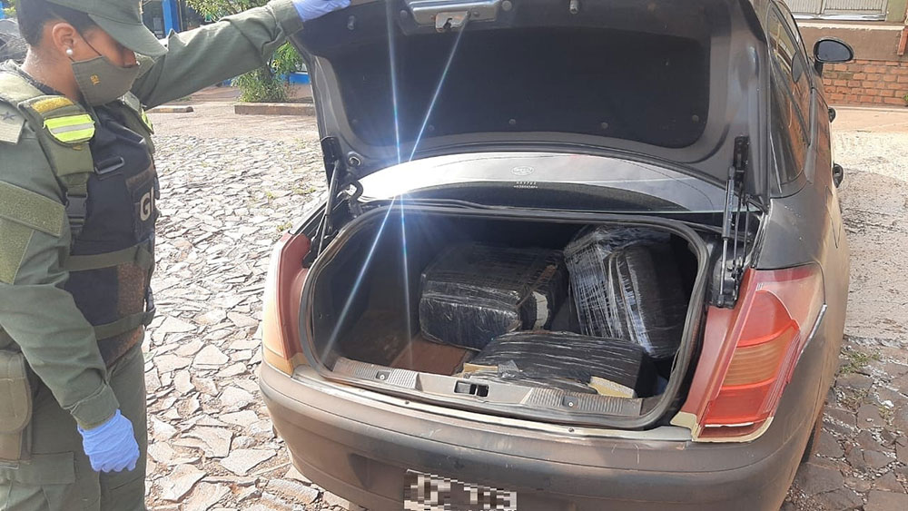 Así, no tardaron en detectar estupefacientes alojados en distintos compartimientos del automóvil. Hallaron dos bultos en el piso de los asientos traseros y tres dentro del baúl.