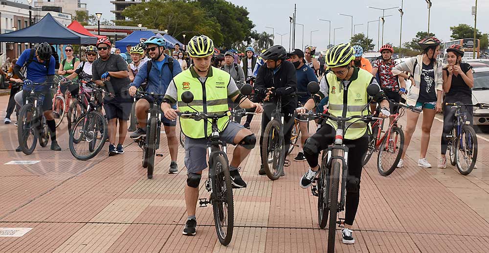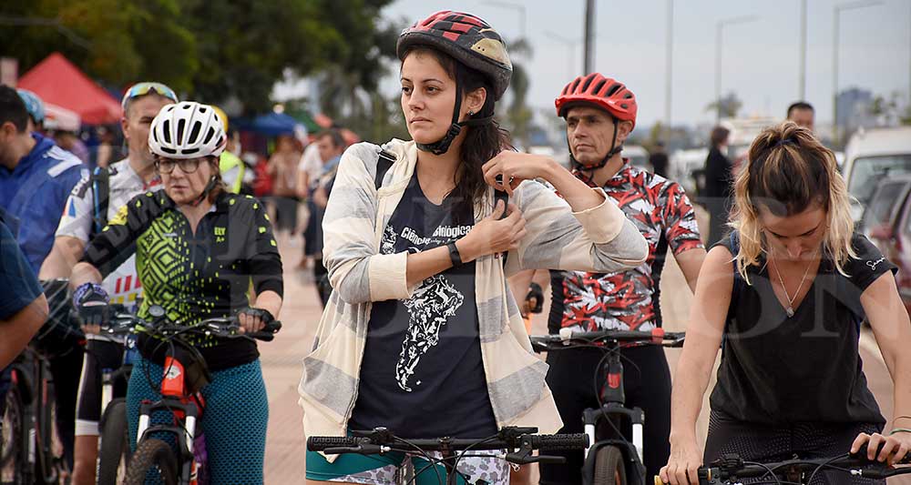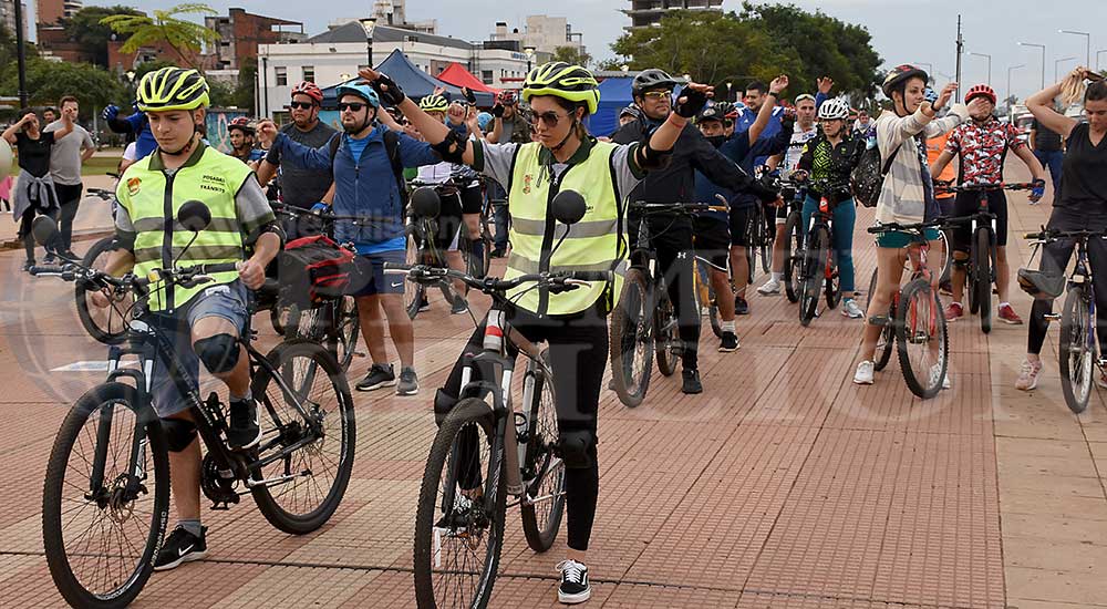 Un numeroso grupo de ciclistas se sumó a la convocatoria ayer en el cuarto tramo de la costanera. El punto final fue frente al Monumento de Andrés Guacurarí.