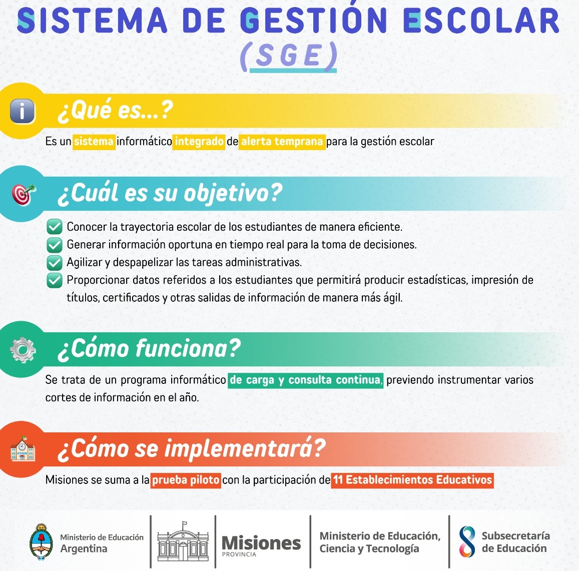 Con el objetivo de tener información respecto a los estudiantes y poder implementar alertas tempranas ante riesgos pedagógicos, en once escuelas misioneras se dio inicio a la prueba piloto del Sistema de Gestión Escolar (SiGE).