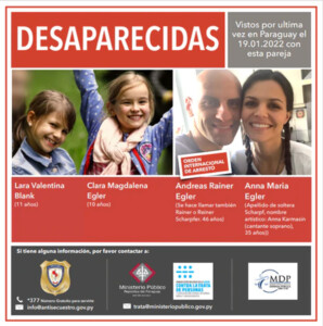 Cabe recordar que Andreas y Anna Egler habían salido de Alemania con las niñas sin el conocimiento de sus otros progenitores, ingresando a territorio paraguayo de manera oficial el 27 de noviembre de 2021. A raíz de ello, la Interpol emitió órdenes de detención internacional contra ambos. La pareja salió de Europa con las niñas debido a que pertenecen a grupos antivacunas y negadores de la existencia del COVID-19.