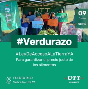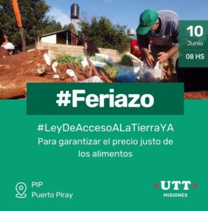 En el caso de Misiones, la jornada de protesta será este jueves y el viernes. En la ocasión, los productores que integran la UTT realizarán feriazos, donde se ofrecerán distintas producciones a bajo precio.