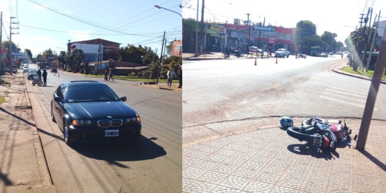 Este mediodía y por causas que se tratan de establecer se produjo una colisión entre un automóvil VMW y una motocicleta Honda de 250cc en la intersección de las avenidas Cocomarola y Salvador Miqueri de la ciudad de Posadas.