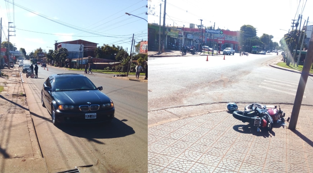 Este mediodía y por causas que se tratan de establecer se produjo una colisión entre un automóvil VMW y una motocicleta Honda de 250cc en la intersección de las avenidas Cocomarola y Salvador Miqueri de la ciudad de Posadas.