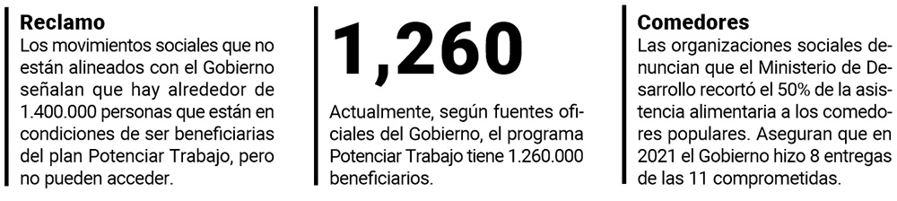 La llamada Unidad Piquetera reclama la apertura de los programas de empleo y denuncia recortes en las entregas de alimentos a los comedores populares. El Gobierno nacional, en tanto, ya advirtió que no aumentará por ahora el número de planes sociales.