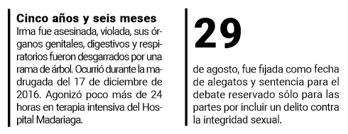 El martes 16 de agosto próximo, un día antes que se cumplan cinco años y ocho meses del femicidio de Irma Ferreyra Da Rocha, el Tribunal Penal 1 iniciará el juicio oral para esclarecer el hecho y que tiene un acusado para sentarse en el banquillo, pero que podría derivar en una discusión que implique en acusaciones por mala praxis médica.