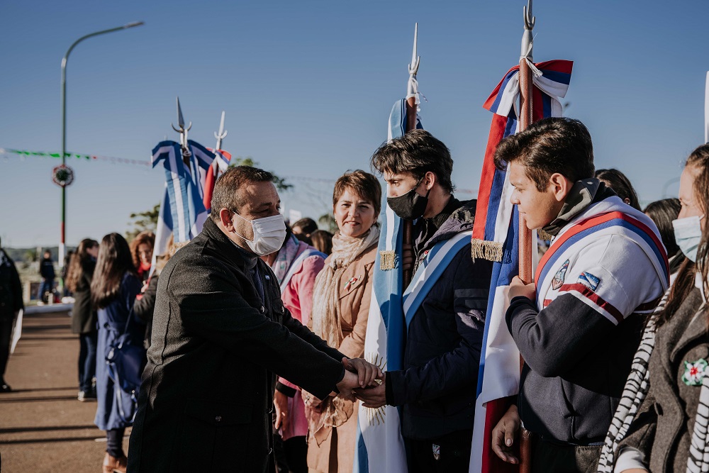 Acompañaron el acto concejales locales, otras autoridades municipales, miembros de las Fuerzas de Seguridad, del clero y de la comunidad educativa de Garupá.