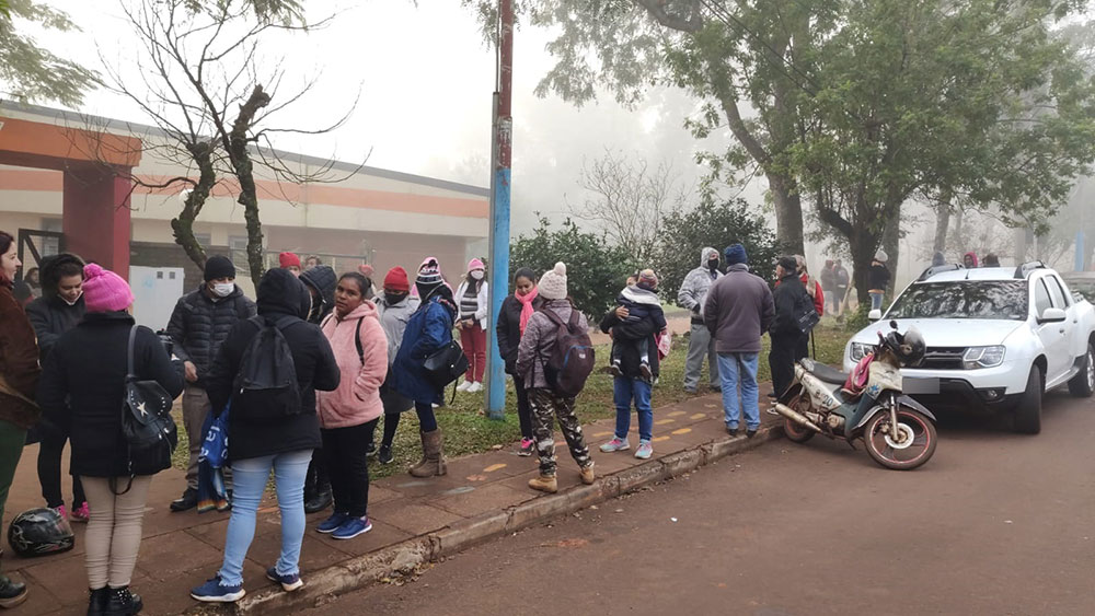 Esta mañana integrantes del sindicato MPL (Movimiento Pedagógico para la Liberación) y de la CTA (Central de Trabajadores Argentina) se manifestaron frente a la escuela de frontera N° 607, ubicada en la avenida El Libertador de Montecarlo.