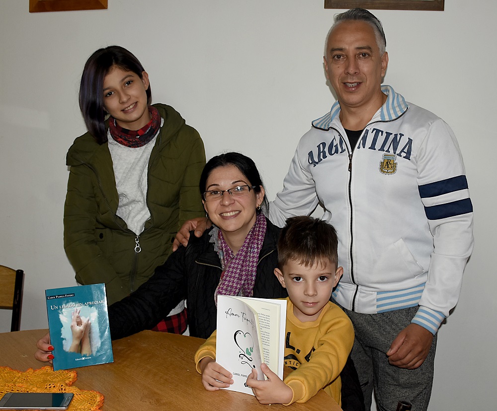Para su primer escrito, buscaba editorial y no conseguía. Entonces envió mails a cinco, y sugirió a su esposo: “Vamos a hacer con la que me responda. Pasaron dos días y, de manera muy profesional, me respondió Editorial Utopías, de Tierra del Fuego. El segundo libro, “Amor tripartito”, que en este momento está a la venta, fue con la Editorial Autores de Argentina.