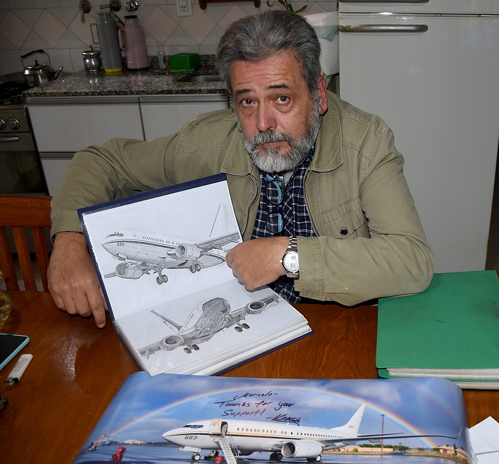 Con frecuencia, desde el exterior, se ponen en contacto con Allende para solicitar trabajos que se plasman en tapas de libros, “así que les envío el dibujo a cambio de ejemplares, y queda esa satisfacción de decir ¡mirá adonde terminó mi dibujo!”. Una de las solicitudes correspondió al libro del centenario de la aviación militar de Ecuador y para varias monografías de Jorge Núñez Padín -creador de colecciones especializadas en temas de aviación comercial y militar-, con ilustraciones puntuales de aviones específicos. Asimismo, sirvió para ilustrar la tapa de otro libro, que se publicó en Inglaterra sobre el Curtiss P-40, que volaba en el Norte de África durante la Segunda Guerra Mundial. En esa instancia, trabajó en conjunto con el ilustrador chileno Rodrigo Barraza. “Él hacía los perfiles digitales en color y pidió que lo acompañara para ilustrar la tapa del libro con un dibujo mío. Me pasó la matrícula del avión, elegí, hice dos bocetos, eligieron y publicaron”, refirió Allende, a quien los aviones “me apasionan desde chiquito. No pude ser piloto por cuestiones de la vida y por tratarse de una carrera muy cara. Tengo un compañero de la escuela primaria y secundaria, que está volando en Qatar, con quien mantengo contacto permanente”.