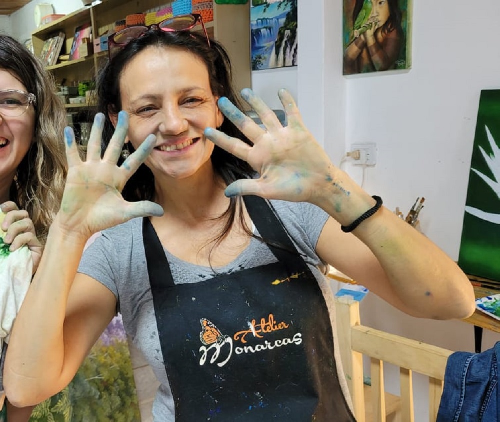 Esta mujer es digna de mi admiración, me encantaría poder contarles más pero sería invadir su vida privada. Ella como muchas otras mujeres es una guerrera incansable, trabajadora, que formó una hermosa familia, que sigue adelante a pesar de los golpes de la vida y que ahora encuentra en el arte el camino hacia la felicidad y la paz interior en una buena jornada de pintura entre amigos y el amigo interior.