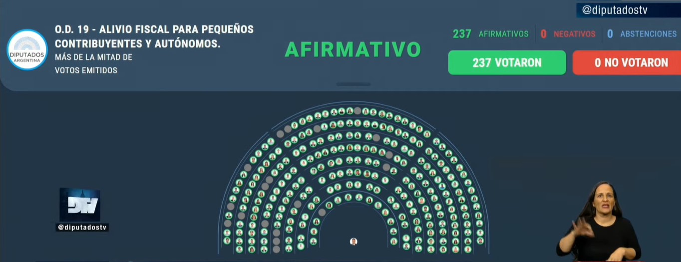 La Cámara de Diputados aprobó esta tarde por unanimidad y envió al Senado el proyecto de ley de alivio fiscal que beneficiará a unos 4,5 millones de monotributistas y 140 mil autónomos.