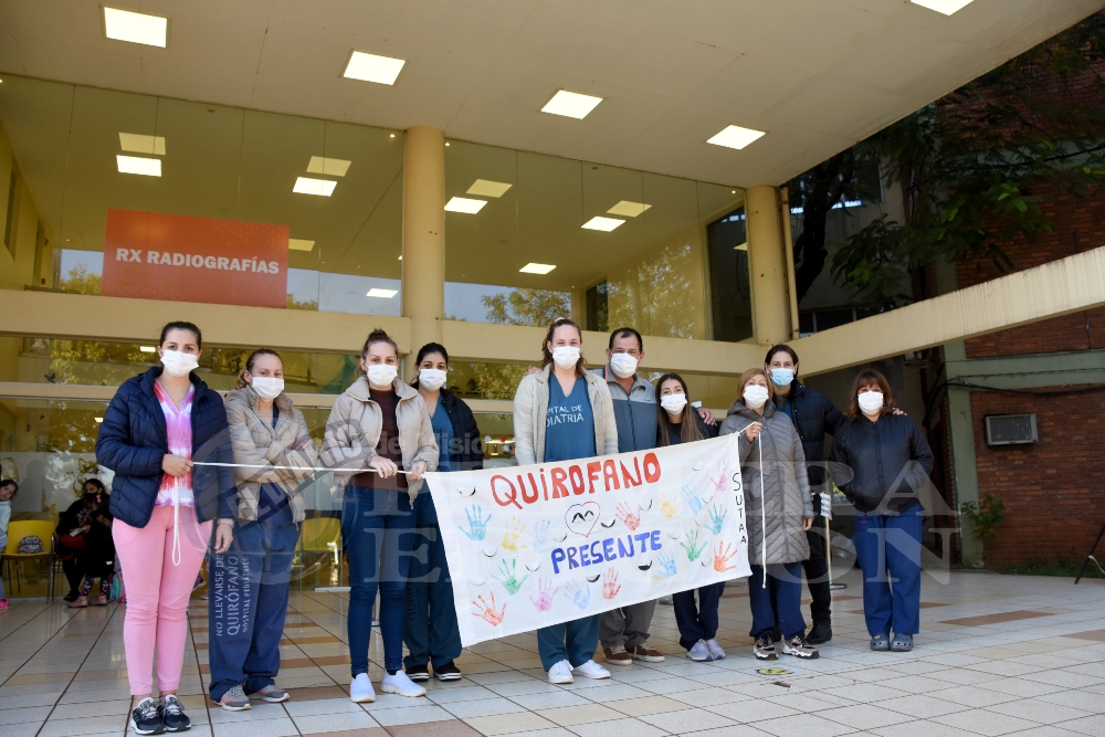 Ayer, el equipo profesional de quirófano del Hospital Pediátrico Fernando Barreyro suspendió alrededor de 15 cirugías programadas en reclamo a que se les reconozcan dos ítems salariales que sí están cobrando sus colegas de cirugía del Hospital Materno Neonatal y del Hospital Escuela Ramón Madariaga.