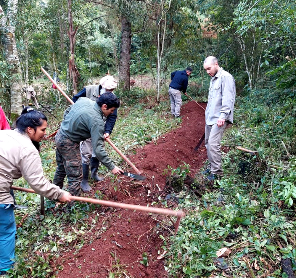 Por otro lado, como forma de incorporar tecnología socialmente adecuada, se hicieron prácticas de curva de nivel tanto en la propia reserva como en la chacra de una familia vecina.