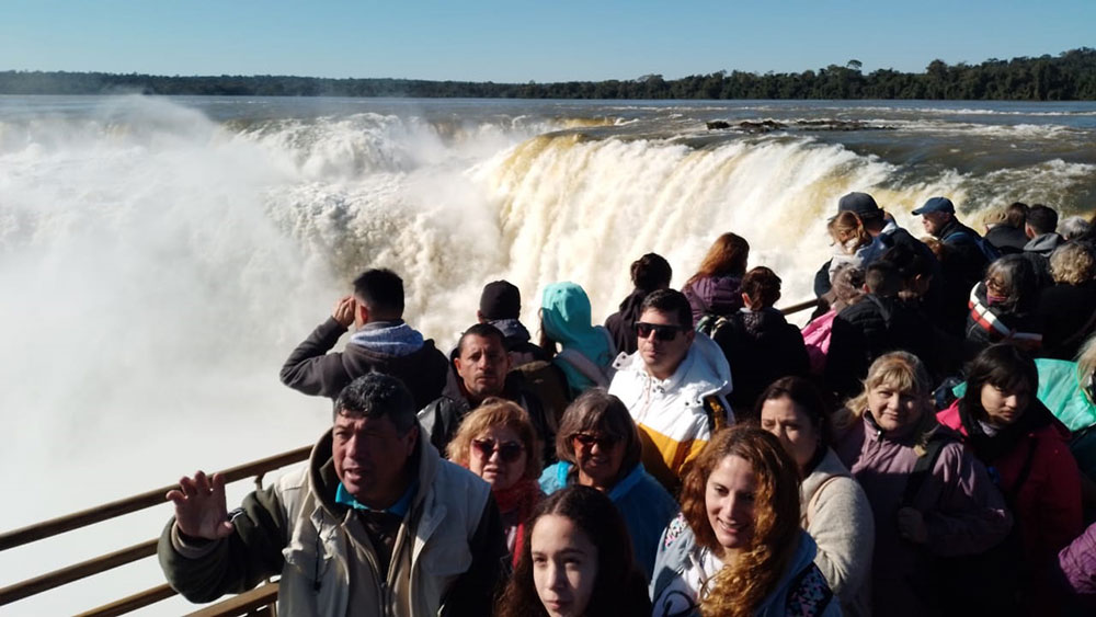 Este sábado, 18 de junio, podría registrar récord de visitas en esta pospandemia ya que se calcula que ingresarían entre 9 mil y 10 mil personas. Desde temprano, numerosos grupos de turistas comenzaron a recorrer el área y la fila de quienes esperaban para acceder al área cataratas era extensa.