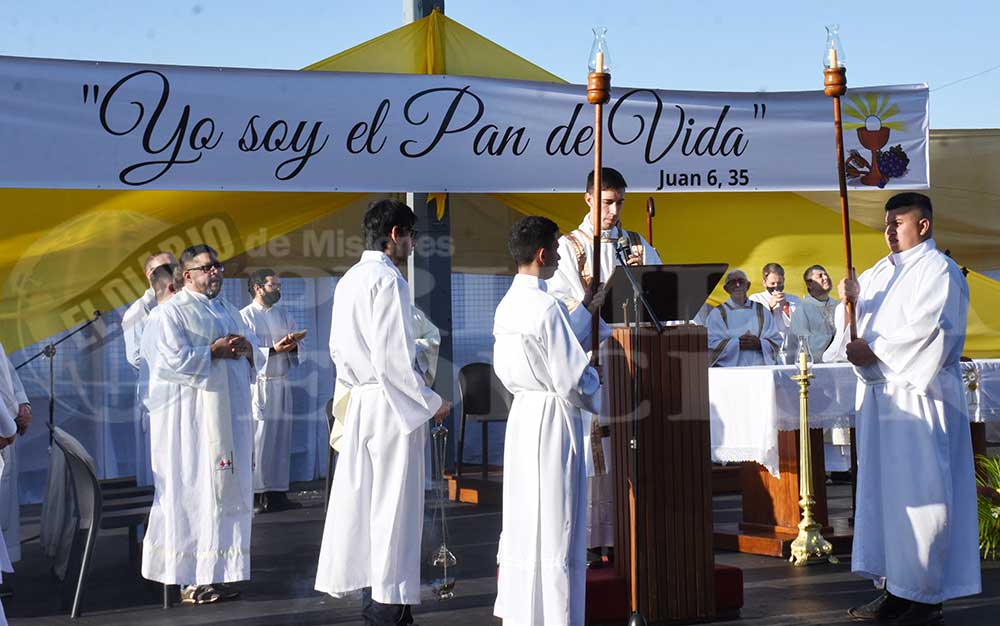 En un clima festivo y de mucha alegría, la Diócesis de Posadas celebró ayer Corpus Christi, ante una multitud que colmó el anfiteatro Manuel Antonio Ramírez y luego se unió en procesión hasta la Catedral San José.