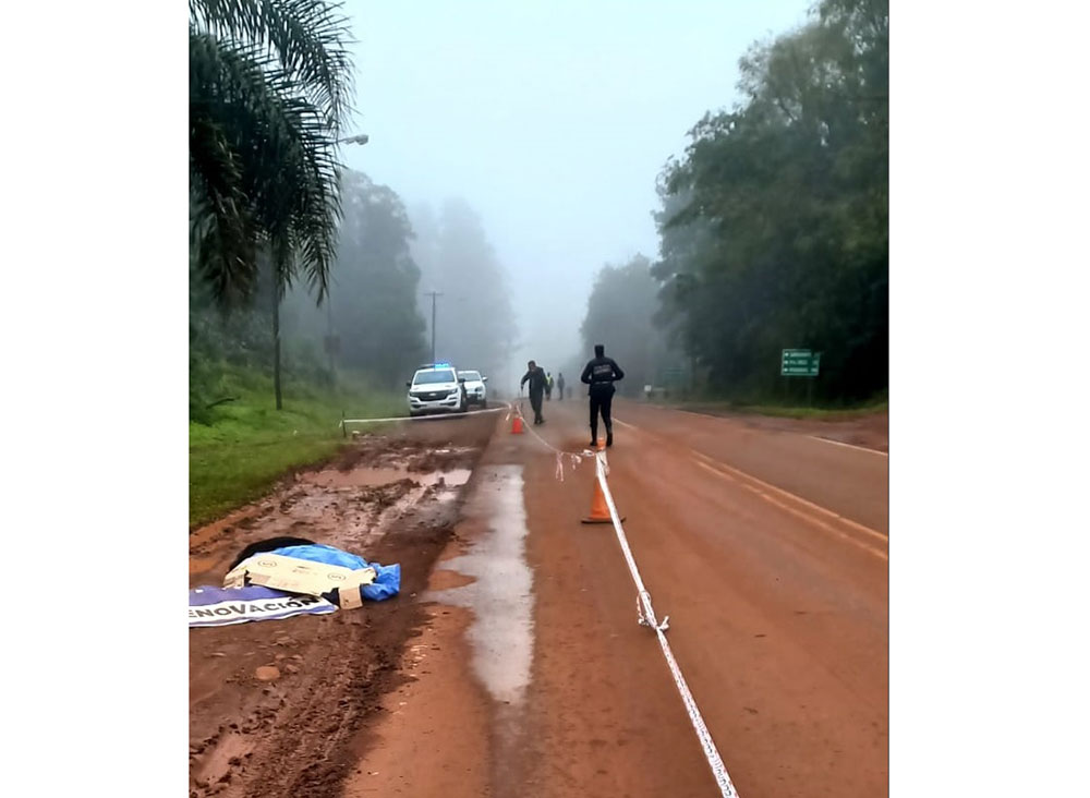 El trágico episodio tuvo el primer alerta a las 7.20 de ayer a la altura de Tres de Mayo, sobre el asfalto de la ruta 12, una camionera brasileña de 45 años que manejaba un Mercedes Benz con semirremolque en dirección a Foz de Iguazú debió frenar bruscamente porque entre la parrilla del transporte y las ruedas delanteras se le atascaron partes de una motocicleta.