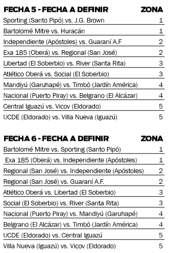 Mañana, en tanto, Regional de San José se medirá con Exa 185 de Oberá y Guaraní Antonio Franco recibirá a Independiente de Apóstoles, ambos choques correspondientes a la Zona 2.