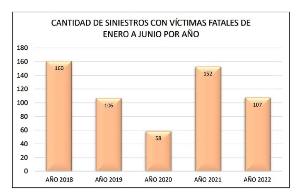 En tanto, en lo que va del año, de enero a junio se registraron 107 víctimas fatales y 1.131 siniestros viales.