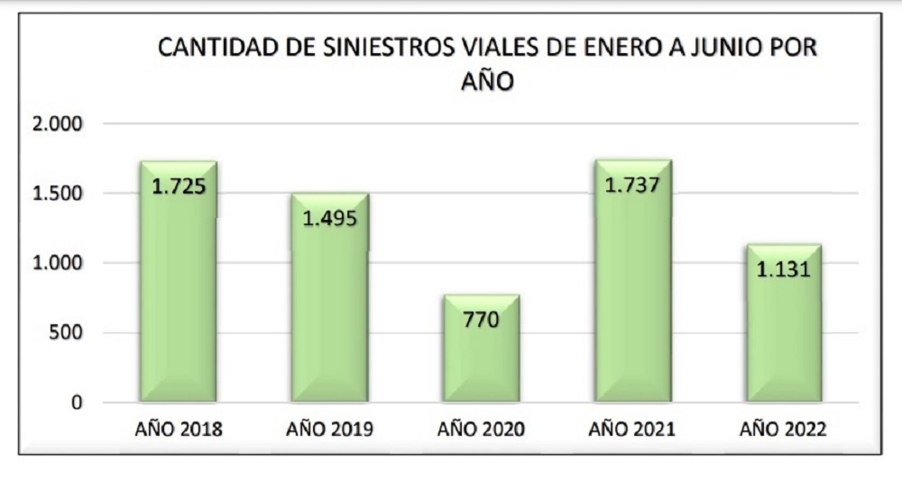 En 2018 se registraron 1.725 siniestros viales y 259 víctimas fatales. En 2019 los números comenzaron a bajar, se registraron 1.495 siniestros viales y 199 víctimas fatales.