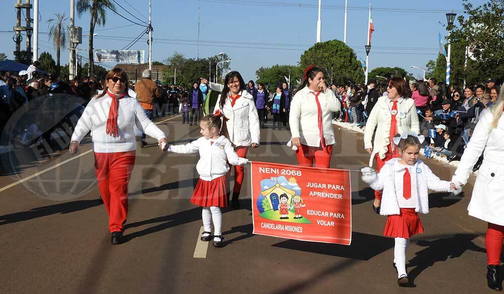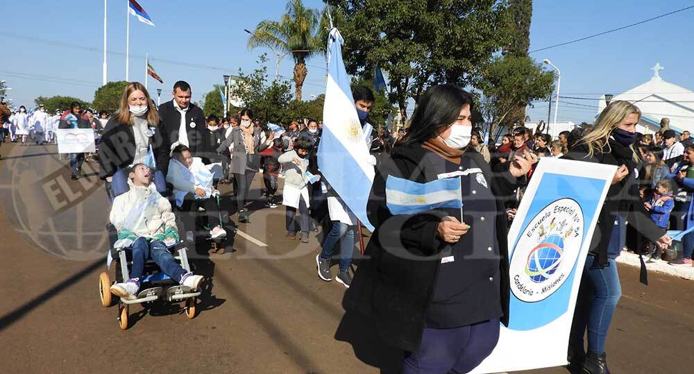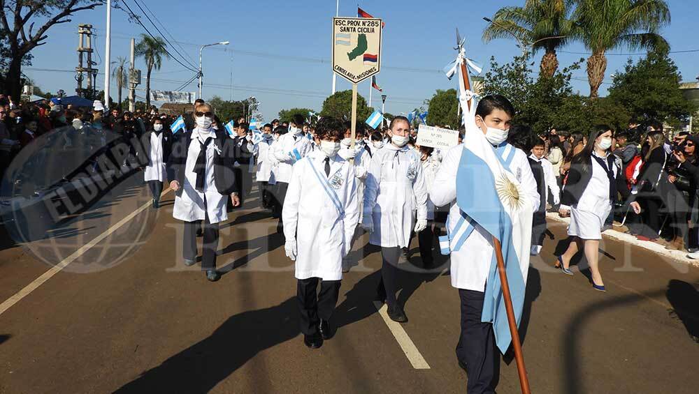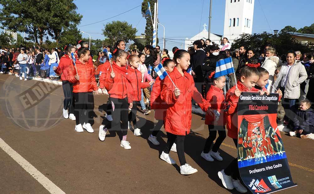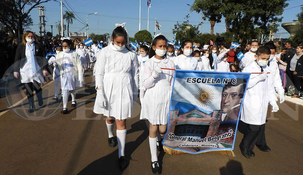 Las fechas patrias invitan a la reflexión, a conmemorar la historia y a participar activamente de las celebraciones propuestas. Hoy Candelaria se vistió de blanco y celeste, y cientos de familias, estudiantes y niños se congregaron en el centro del pueblo con el mismo propósito.