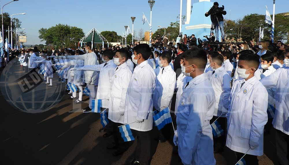 En Posadas, tras el izamiento de la bandera en el Mástil de avenidas Uruguay y Mitre, el acto se trasladó a la plazoleta del barrio 20 de Junio. Allí, alumnos de diferentes escuelas realizaron la promesa de lealtad a la bandera. El encargado de tomar la jura fue el intendente Leonardo Stelatto.