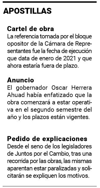 El pedido, según se explicó desde la bancada opositora de Juntos por el Cambio, busca tener especificaciones sobre si la obra está paralizada y, en caso de ser así, desde qué fecha, teniendo en cuenta que el cartel de obra data de enero de 2021, con un plazo de 120 días que estaría vencido.