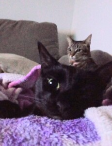 “Yoko Ono es una gatita dormilona, se trepa al techo, le encanta trepar y estar arriba del ropero, el resto del día duerme. Después llegó Yiyo Top, era pequeñito y lo encontré tirado; no dudé en levantarlo. Es el cazador, me tira cerca lo que caza y duerme en mi panza”.