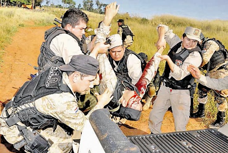 Al menos seis policías y once campesinos murieron en un enfrentamiento durante el desalojo de una propiedad rural en el noreste de Paraguay, en una zona fronteriza con Brasil. El ministro del Interior, Carlos Filizzola, y el comandante de la Policía Nacional, Paulino Rojas, dejan el cargo tras la masacre. El Congreso resuelve conformar una comisión para investigar los hechos y fijar responsabilidades concretas.