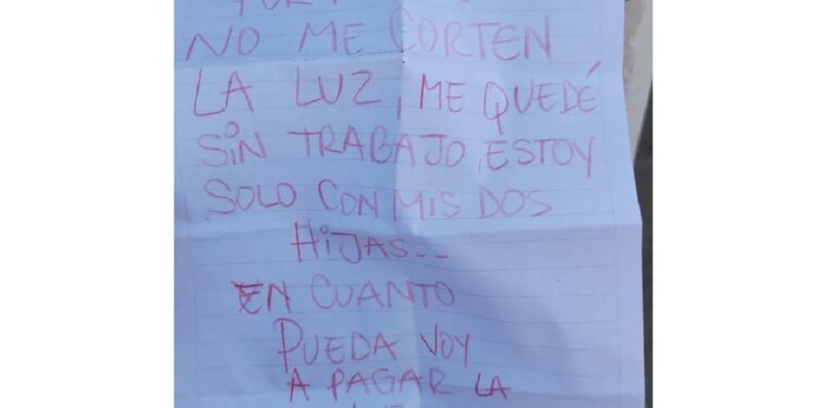 “Por favor, no me corten la luz. Me quedé sin trabajo, estoy solo con mis dos hijas. En cuanto pueda, voy a pagar la luz. Por favor y gracias”, fue el escrito con el que un puntano realizó un pedido desesperado.