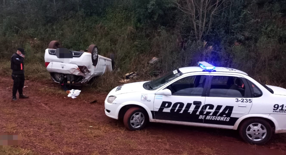 A raíz de esto, agentes de la Dirección de Seguridad Vial y Turismo junto Comando Radioeléctrico y la comisaría local iniciaron la búsqueda y hallaron el auto abandonado a la vera de la ruta 13, unos 8 kilómetros más adelante en posición invertida.