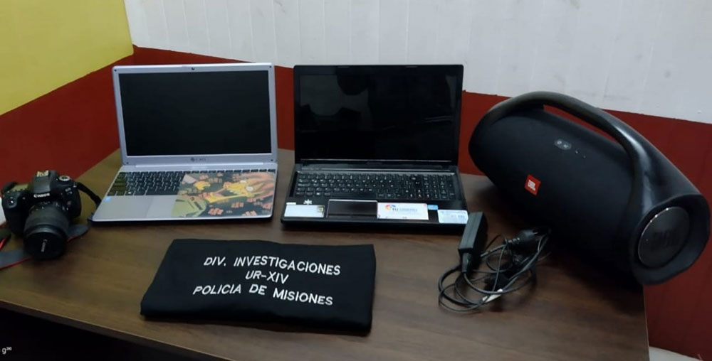 La investigación comenzó a partir de la denuncia de la propietaria del comercio de productos electrónicos, quien relató que horas antes unos intrusos ingresaron al local luego de forzar la puerta principal y se alzaron con dos notebooks, un parlante y una cámara digital.