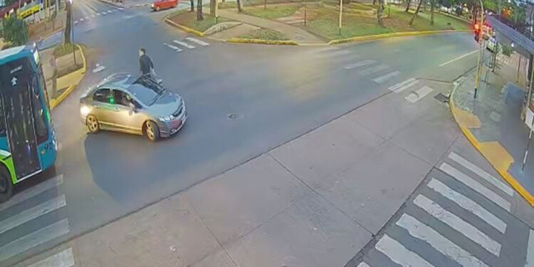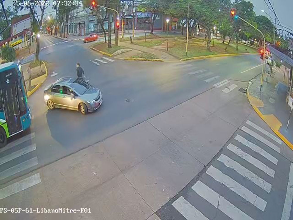 En principio, alrededor de las 7.30 los vigilantes observaron al automovilista a través de las cámaras apostadas en la calle Ayacucho y la avenida Mitre, cuando entre movimientos bruscos e imprudentes colisionó a un colectivo, y rápidamente se dio a la fuga.
