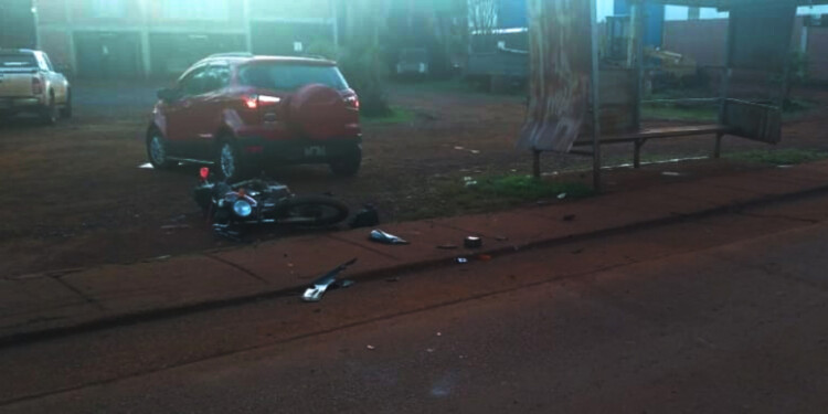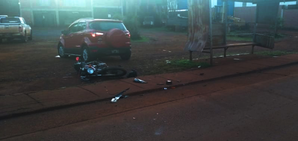A raíz del impacto, el motociclista resultó con lesiones y fue trasladado en ambulancia de Bomberos Voluntarios de San Vicente al hospital local. El conductor del rodado mayor salió ileso.