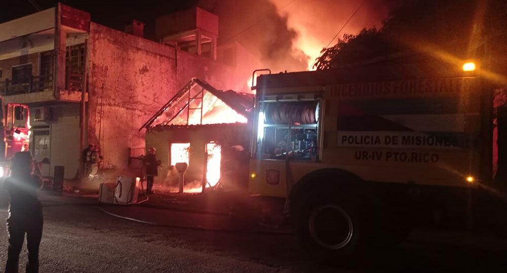 Una familia se salvó por milagro tras el incendio de su vivienda, ayer minutos antes de las 6 en Puerto Rico. Los efectivos fueron requeridos por dicho siniestro sobre la calle Gervasio Posadas, en zona céntrica de la mencionada localidad.