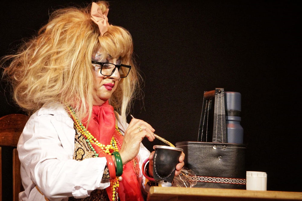 Obra: “Al borde de un ataque de nervios. Tributo al desamor” del Grupo Stand Drag de Asunción; Mena Bell drag queen; Ursula Sokol (humo, monólogos).