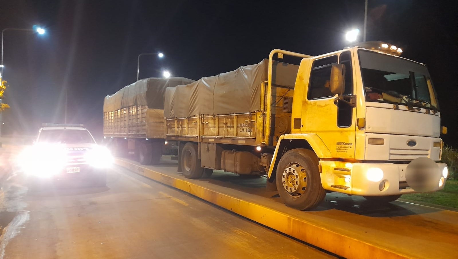 En un control policial realizado durante la madrugada de este viernes, efectivos de la Unidad Regional VII de la Policía de Misiones detuvieron la marcha de un camión con acoplado que circulaba por el Paraje El Solitario, en Apóstoles.