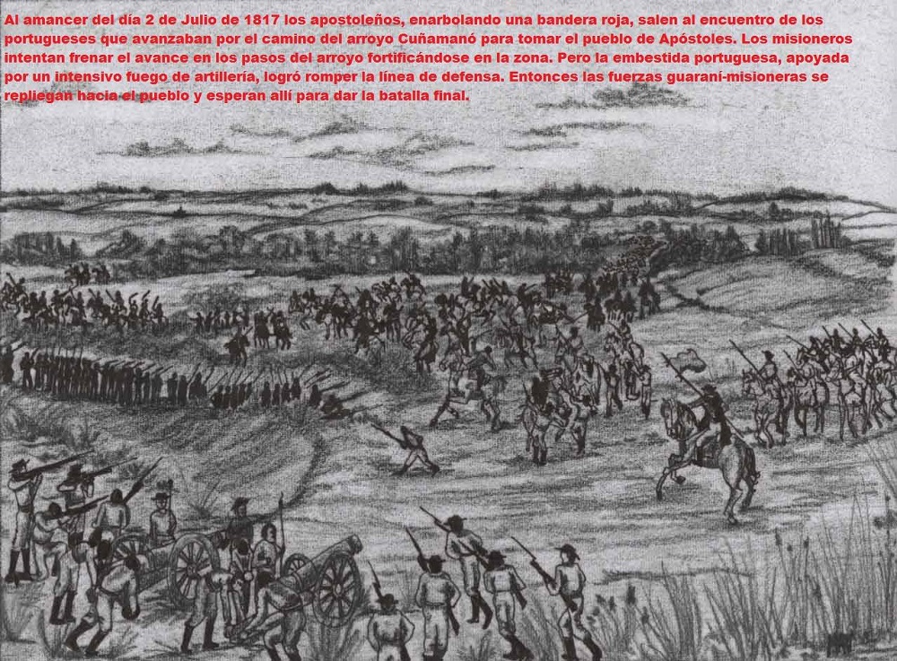 La Batalla de Apóstoles, donde las fuerzas misioneras comandadas por Andrés Guacurarí derrotaron a las fuerzas invasoras portuguesas comandadas por el Brigadier Francisco Das Chagas Santos, se encuentra documentada minuciosamente por fuentes históricas, lo que nos permite conocer con exactitud, entre otros detalles, el escenario territorial en el que se desarrolló la batalla.