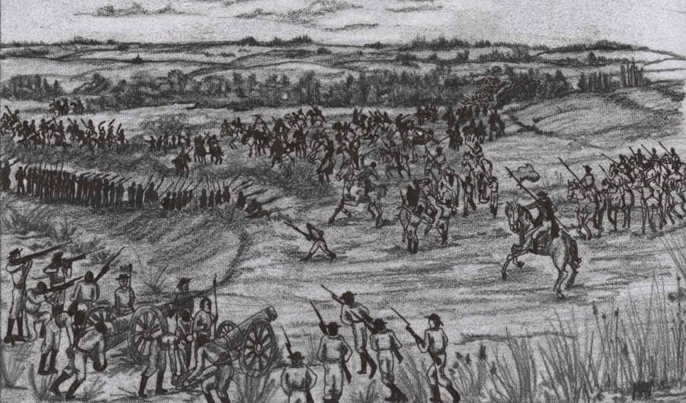 DEFENSA. Batalla en el camino del arroyo Cuñamanó donde los misioneros enfrentaron a los portugueses para frenar el avance, no lo logran y la batalla final se da ya en el pueblo.
