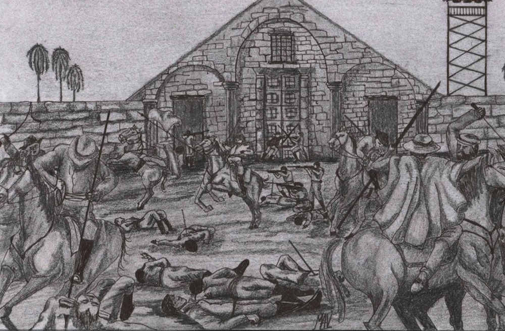 DIBUJOS DE LA BATALLA. La lucha frente a la iglesia de la reducción, cuenta la historia que fue uno de los enfrentamientos más sangrientos de la Batalla de Apóstoles.
