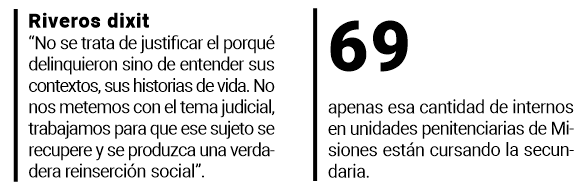No es casual entonces que sean muy pocos, contados con los dedos de la mano, los internos que siguen estudios de educación superior en Misiones. No obstante, según indicó Sánchez, “hace seis o siete años comenzó la demanda de los internos de educación secundaria y, aunque son pocos, tenemos algunos internos que están en condiciones de seguir estudios terciarios y universitarios. Antes ni hablábamos de eso porque no teníamos internos con la secundaria terminada. Hoy, gracias a la política educativa que se implementa en los contextos de privación de libertad, estamos ante otra realidad”.