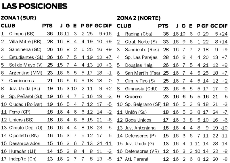 15.30, Liniers (BB) vs. Estudiantes (SL) – Árbitro: J. Díaz